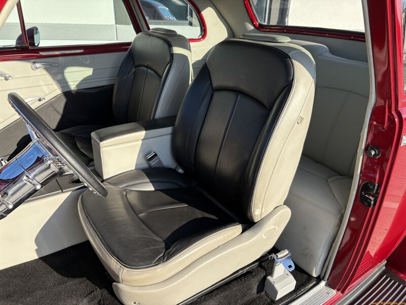INTERIOR CONDITION OVERVIEW: The custom leather interior is both comfortable and stylish, blending modern convenience with classic appeal. Leather power bucket seats, a center console with armrest and cupholder, a chrome tilt steering column, and a tasteful three-spoke steering wheel create a cockpit that feels upscale without looking out of place, and doesn’t detract from the original art-deco design. Fit and finish are nicely executed, making sure the inside of this car is just as beautiful as the outside!