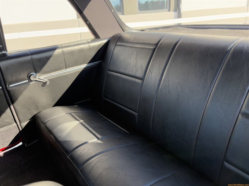 Inside, the Bel Air delivers a blend of comfort, style, and functionality. The black bucket seats look excellent and pair well with the custom features throughout the cabin. The power seats and tilt column bring modern convenience to a vintage interior, while the Lecarra steering wheel adds a bit of sporty flair. The Autometer gauges give you accurate information with classic hot rod style, and the Kenwood stereo ensures your soundtrack is as sharp as your ride. Aftermarket A/C keeps everything cool in the summer. The cupholder armrest is a practical touch—because even classics deserve a bit of everyday comfort. How else are you supposed to get your coffee to Cars & Coffee? Overall, the interior is clean, tasteful, and ready to cruise.