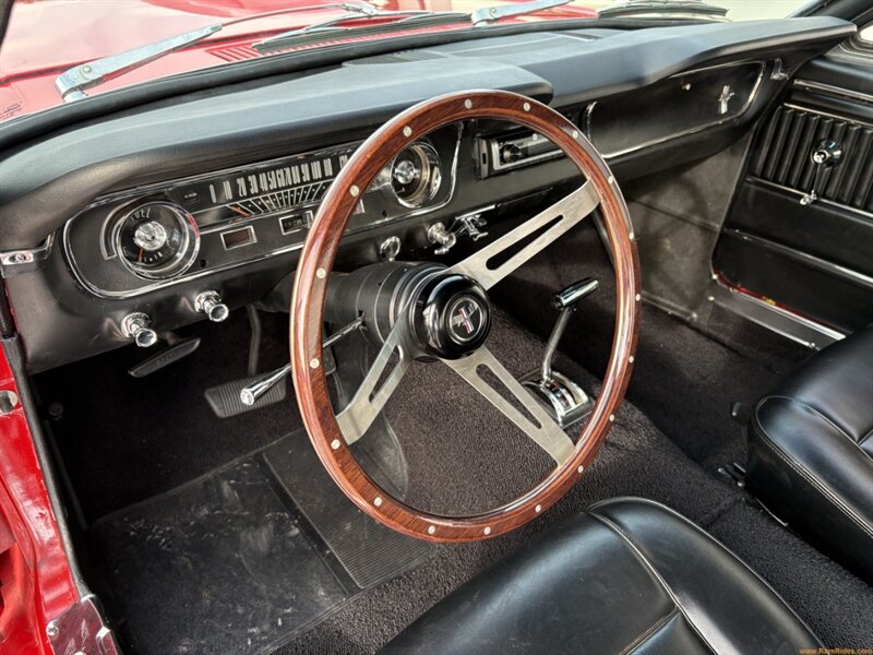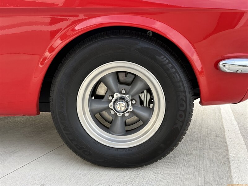 BODY OVERVIEW: This Mustang coupe has been restored and tastefully customized to enhance its classic lines without overdoing it. The hood scoop, side scoops, and low-slung stance give it a period-correct road racer vibe, while the 14-inch American Racing Torq Thrust wheels tie the whole look together. The body is clean and straight. It’s a sharp, confident car that looks just as good rolling down Main Street as it does parked at a cruise-in.