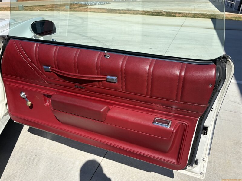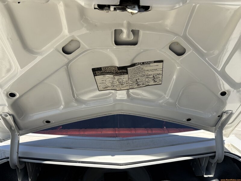 The red cloth interior is a standout feature and is in excellent original condition. Combined with the white exterior, the red interior really pops! The seats, carpets, and door panels reflect the car’s low mileage and careful ownership. Everything inside feels period-correct and well-preserved, with only minimal signs of use such as minor wear on the steering wheel. This car is very comfortable and all the gauges work as they should. Last but not least, a Custom Autosound retro-modern stereo has been installed in place of the original stereo (though the original is included).