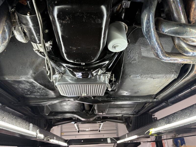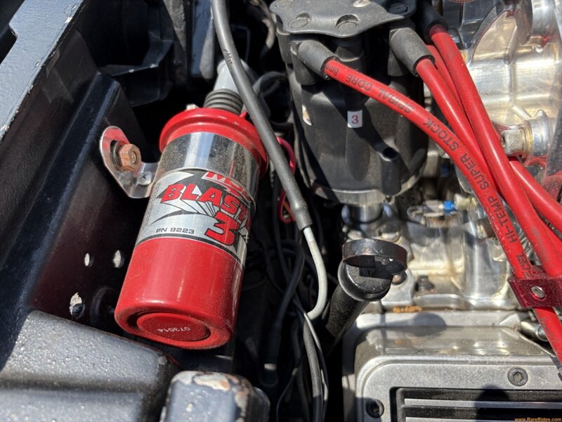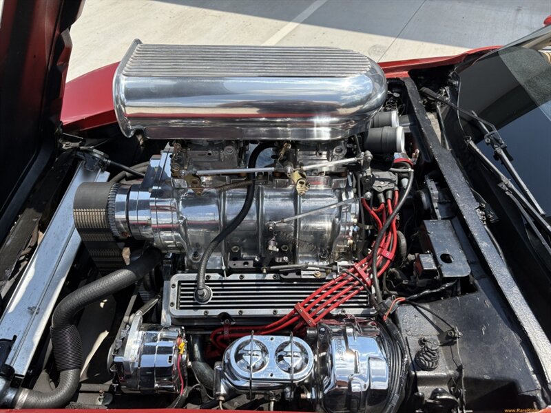 Here’s where things get serious. The original numbers-matching 350 V8 has been transformed with dual 4-barrel carburetors and a polished supercharger. The transmission is old reliable–a TH350 3-speed automatic, for cruising convenience. Additional upgrades include an MSD ignition coil, chrome alternator, chrome brake booster/master cylinder, and an aluminum radiator for cooling support. Despite its aggressive setup, this car remains streetable and doesn’t require any race-car know-how to operate. It’s fast, it’s fun, and it sounds amazing through those chrome side pipes! Make no mistake–listening to that supercharger whine takes the Corvette experience to a whole new level.