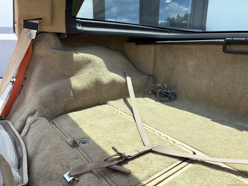 The tan cloth interior appears largely original and has held up well over the years. The seats are comfortable and in nice original condition, with minimal visible wear. Power windows add an extra touch of convenience. The dash has suffered from sun damage, as these cars are apt to do, and hidden beneath a custom-fit carpeted dash mat. The overall cabin is clean, functional, and features an Alpine stereo for added audio performance. It’s the perfect backdrop for cruising or carving up backroads!