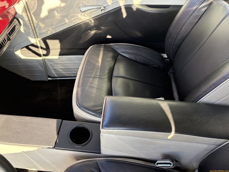 INTERIOR CONDITION OVERVIEW: The custom leather interior is both comfortable and stylish, blending modern convenience with classic appeal. Leather power bucket seats, a center console with armrest and cupholder, a chrome tilt steering column, and a tasteful three-spoke steering wheel create a cockpit that feels upscale without looking out of place, and doesn’t detract from the original art-deco design. Fit and finish are nicely executed, making sure the inside of this car is just as beautiful as the outside!